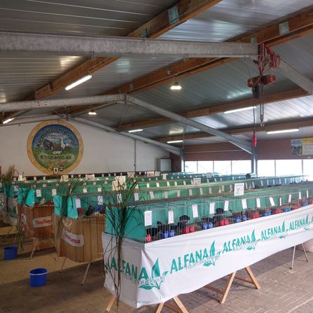 Auch in diesem Jahr waren wir mit unserer Clubschau zu Gast in Kirchardt - Berwangen. Hier erst mal ein ganz großes Dankeschön an den 1. Vorsitzenden Ulrich Rohrmus und sein gesamtes Team an seiner Seite !!!. Hier in Berwangen sind die perfekten Voraussetzungen für Mensch und Tier um ein schönes Wochenende für alle Rassetaubenfreunde zu verbringen. Wir freuten uns sehr in diesem Jahr zum ersten mal auf der Unterländer Taubenschau genau 307 Rassetauben der Öffentlichkeit präsentieren zu können. Es ist eine relativ frühe Schau, einige Tauben waren noch nicht ganz durchgemausert, aber unsere Preisrichter bewiesen auch hier Fingerspitzengefühl. Es war ursprünglich auch unser Gedanke, den Züchtern eine frühe Schau zu bieten, um ihre Tiere vor Beginn der Großschauen schon mal auf "Herz und Nieren" von unseren Preisrichtern prüfen zu lassen. Es hat uns sehr gefreut das alte und auch neue Aussteller und Freunde der Rassetaubenzucht den Weg zu uns gefunden haben und wir sie bei uns begrüßen konnten. Da können wir als kleiner Club in dieser Zeit sehr stolz sein !!! Mit 26 verschiedenen Rassen von unseren 23 Zuchtfreunden/innen mit ihren dazugehörenden Farbvarianten haben wir ein schönes gemischtes Bild quer durch die Rassetaubenzucht dem Interessierten Besucher zur Schau stellen können. Um unsere Taubenschau etwas aufzuwerten und interesanter zu Gestalten, veranstalten wir unterschiedliche Wettbewerbe. Unter unseren Clubmitgliedern wurde der Unterländer Clubmeister auf 5 Jungtiere gekürt. Neu in diesem Jahr war den "Best in Show" die beste Taube der Ausstellung zu prämieren. Es bestimmte jeder Preisrichter aus seiem Richtauftrag die beste Taube als Champion. Aus diesem Champions wurden dann Sonntag per Losverfahren von unserer Glücksfee die Best in Show gezogen.