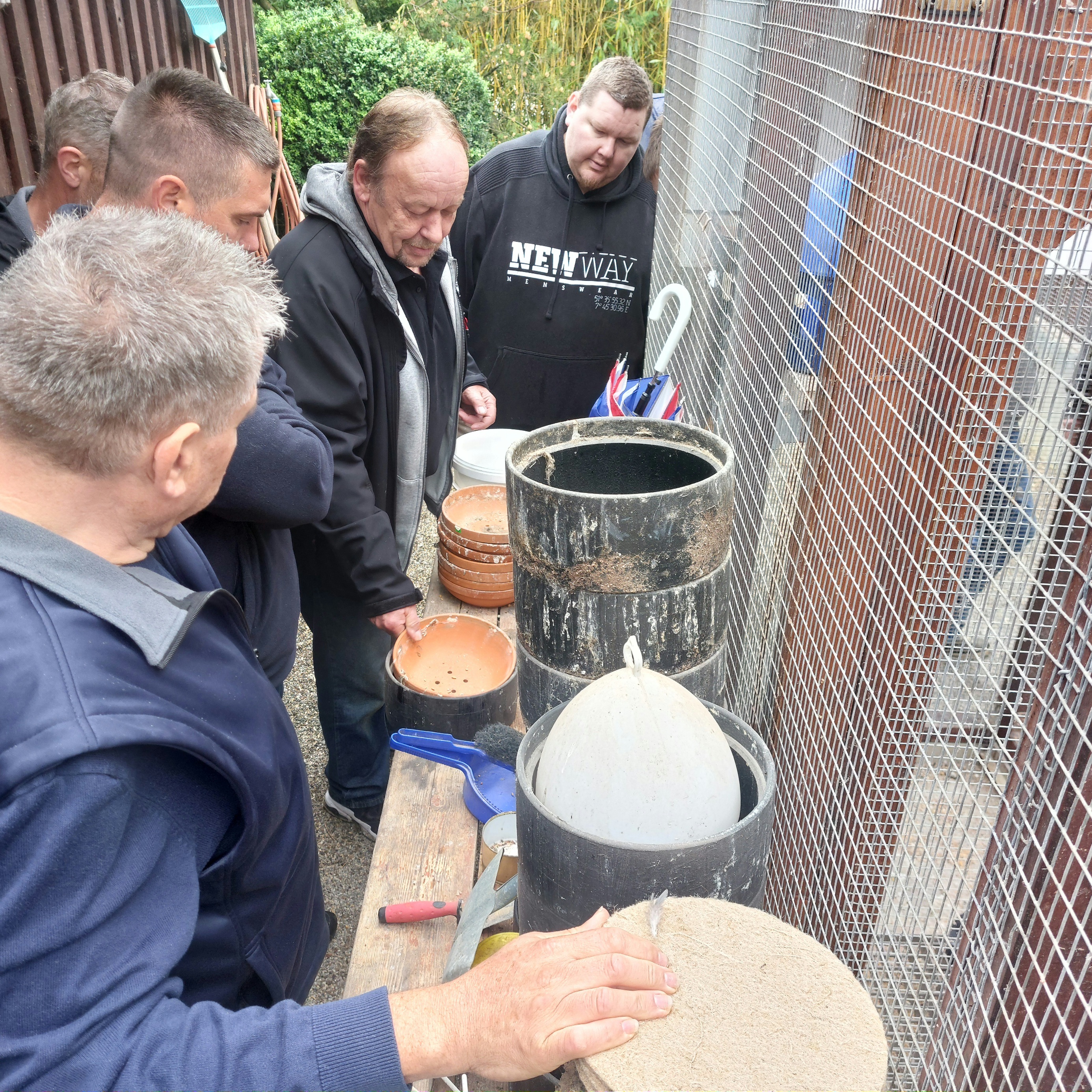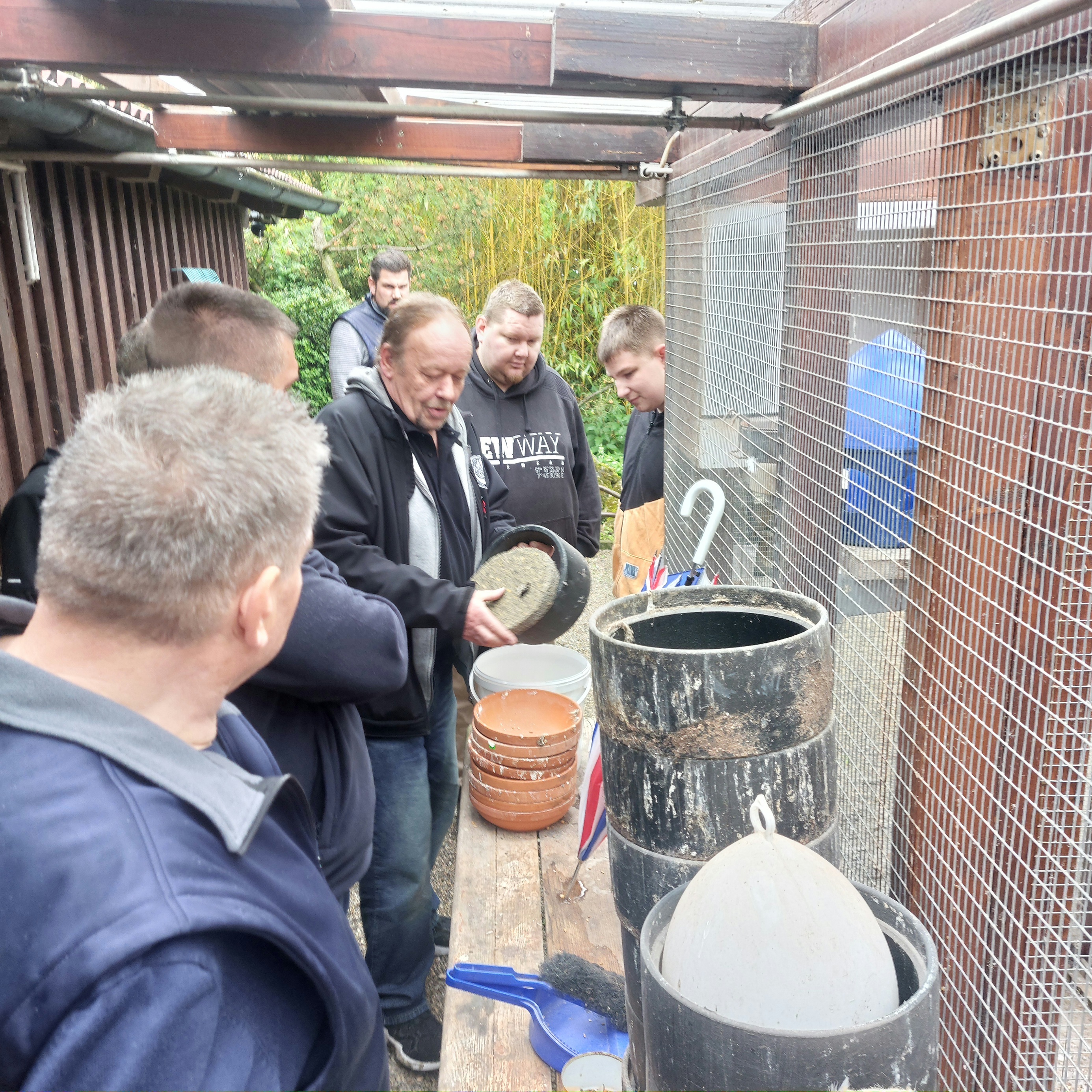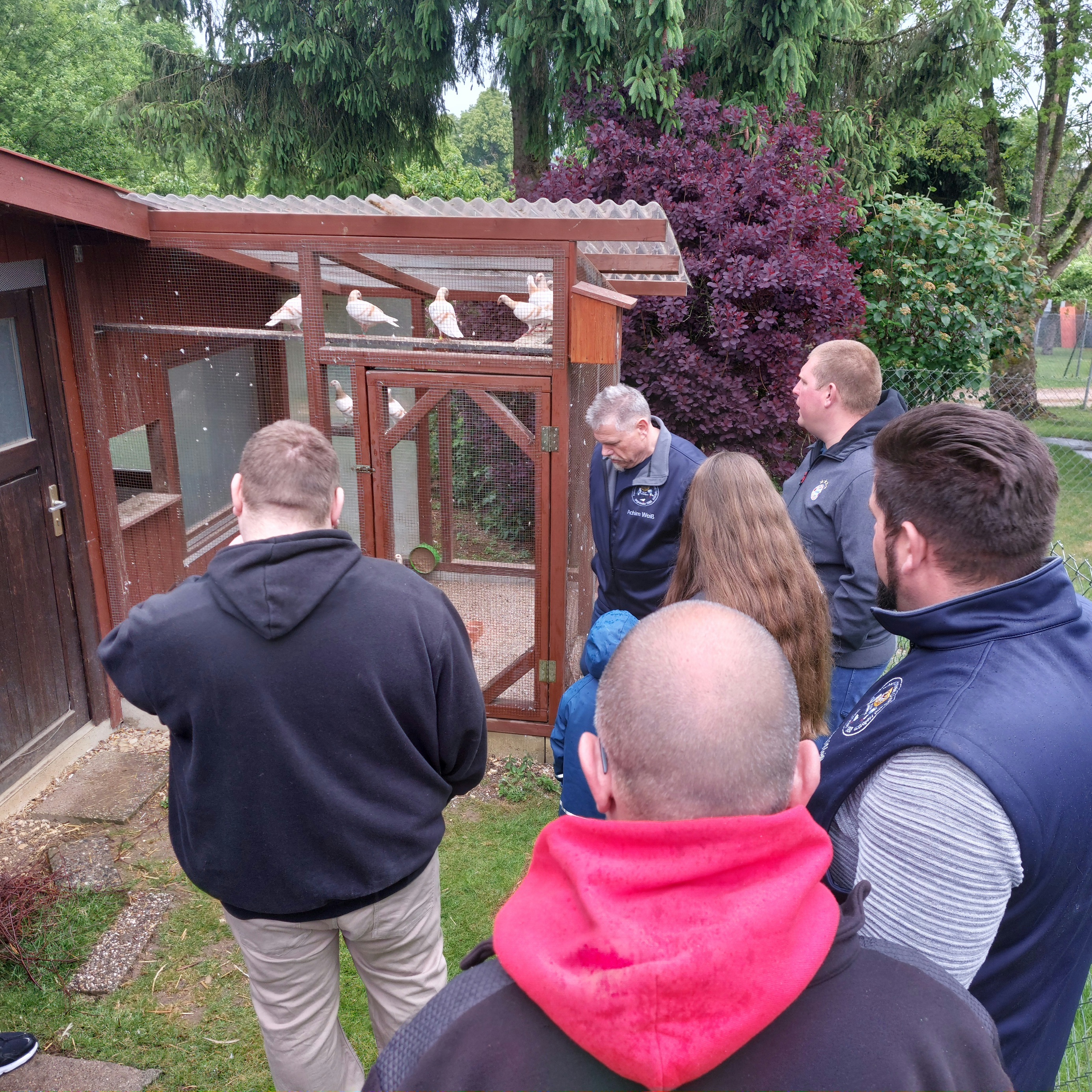 anstehenden Rassetaubentag im September und unserer Clubschau im Oktober, starteten wir mit der Besichtigung der Zuchtanlage.